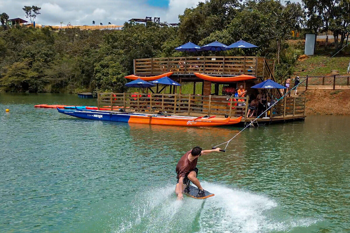 Nosso paraíso e nossa veia esportiva em pleno cerrado! Aqui a gente literalmente flutua num quiosque sobre as águas da lagoa Corumbá IV, dentro do Bali Park Resorts. Com um cenário de cinema, totalmente integrado à natureza, nosso espaço carrega endorfina e felicidade em forma de wakeboard, stand up paddle, caiaque e canoa havaiana no interior do Brasil.